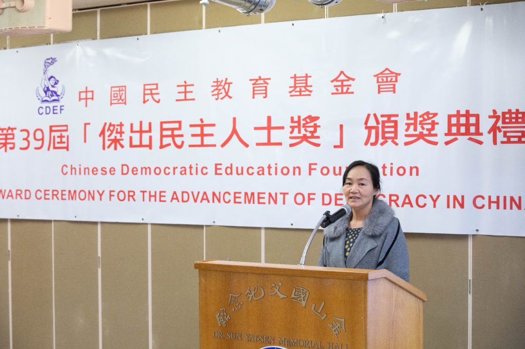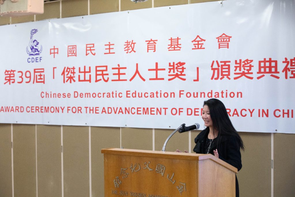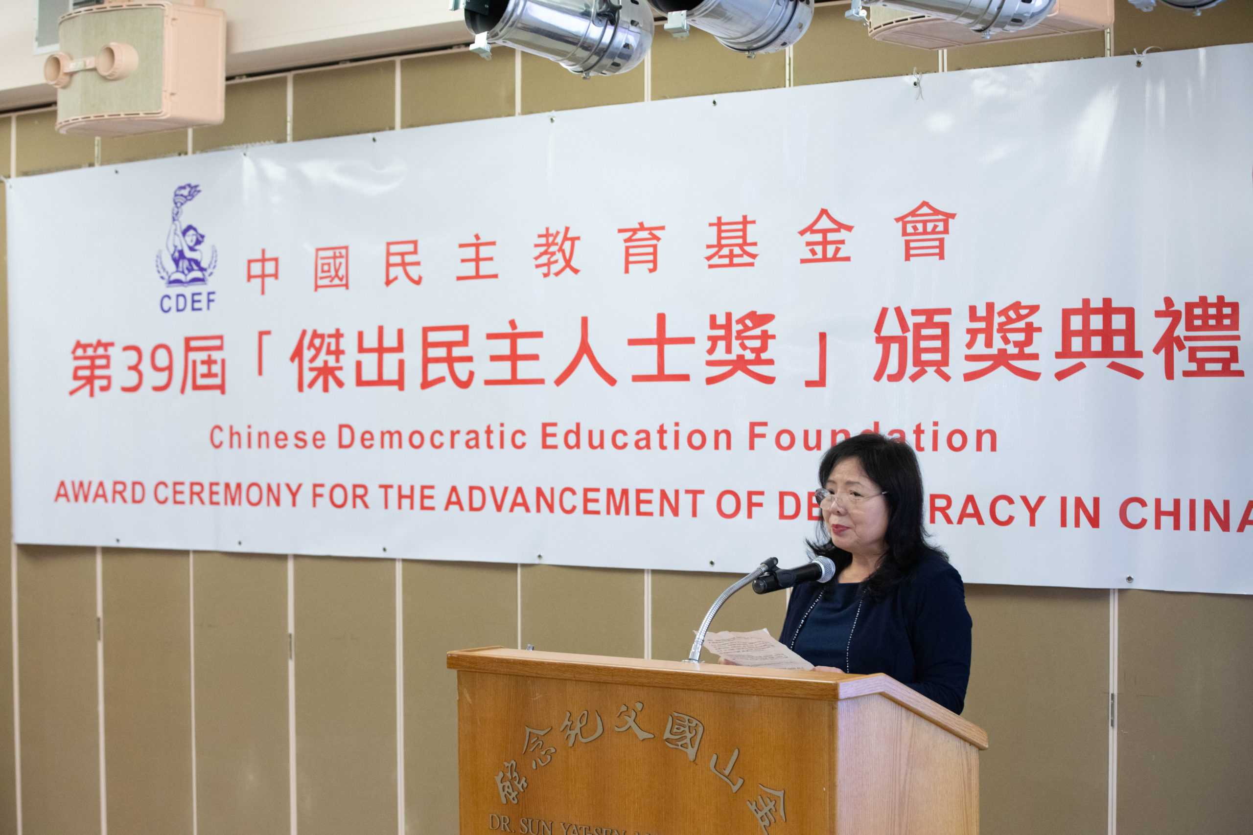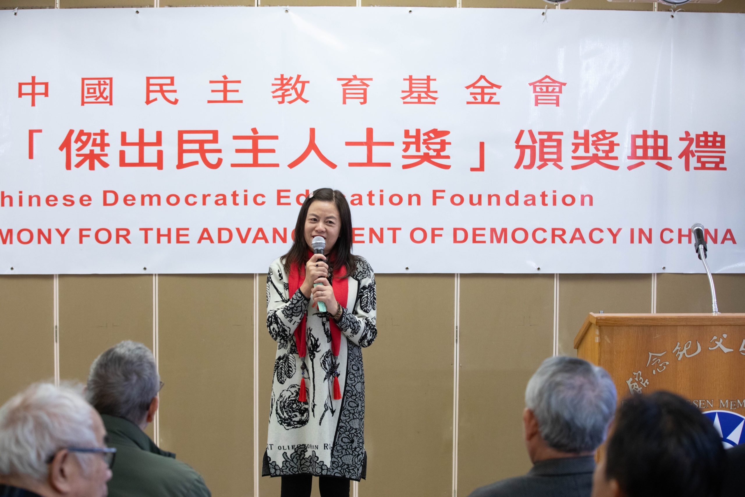 本届颁奖典礼由中国民主教育基金会理事,中国民主党旧金山党部秘书长郑云女士主持。她在开场致词中指出,今天的典礼不仅是一个奖项的颁发仪式,更是一场道义与价值的公开宣示。她表示:“我们在此向所有无惧极权、昂然挺立的人致敬。只要仍有人坚持勇气与不屈,民主的火焰就不会熄灭。”
