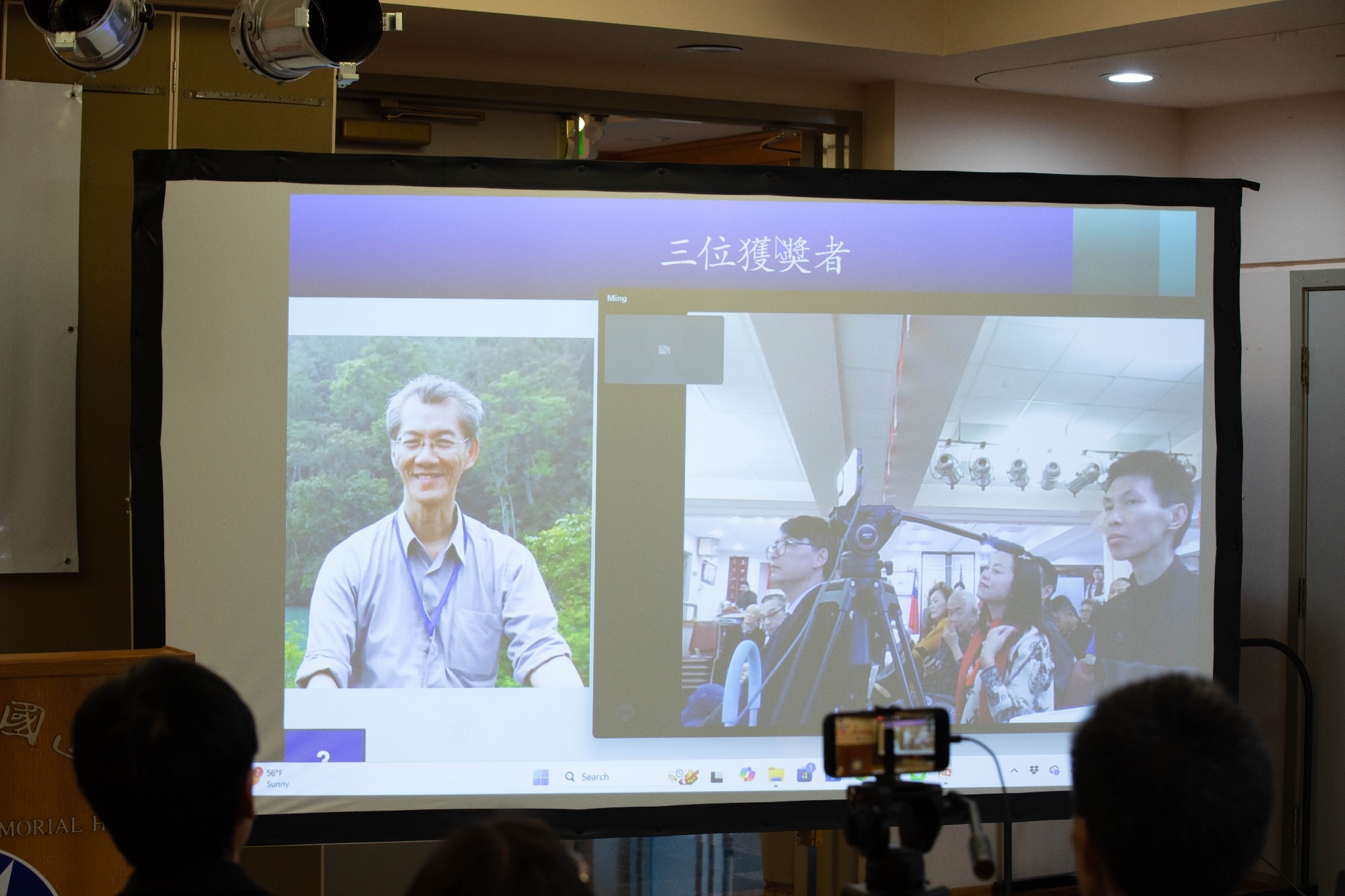 获奖者台湾大学政治系荣休教授明居正(台湾国立政治大学教授李酉潭代为领奖)